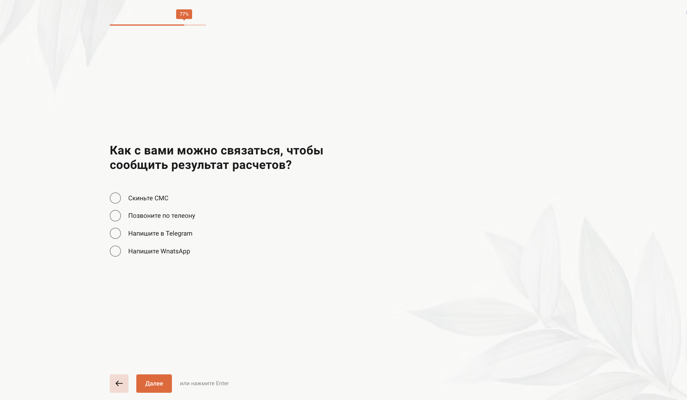 Потенциальный клиент, проходя квиз, отвечает на вопросы, по которым можно сделать общее представление о его потребностях и бюджете, которым он располагает. Также клиент присылает свой контакт, по которому можно уточнить детали через мессенджеры или сделав звонок по телефону.